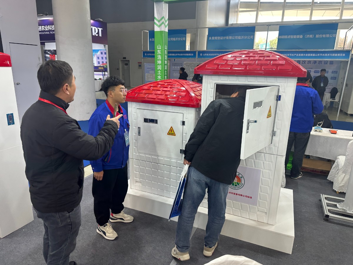 山东省2025年节水产业发展大会暨首届山东节水技术与装备展览会圆满成功,浩坤润土公司展会推出的新款机井灌溉射频控制系统,水肥一体化系统,智能卷盘式喷灌机等灌溉设备深受客户欢迎,前来参观咨询的客户络绎不绝。很多客户都与公司达成合作意向,建立合作关系。